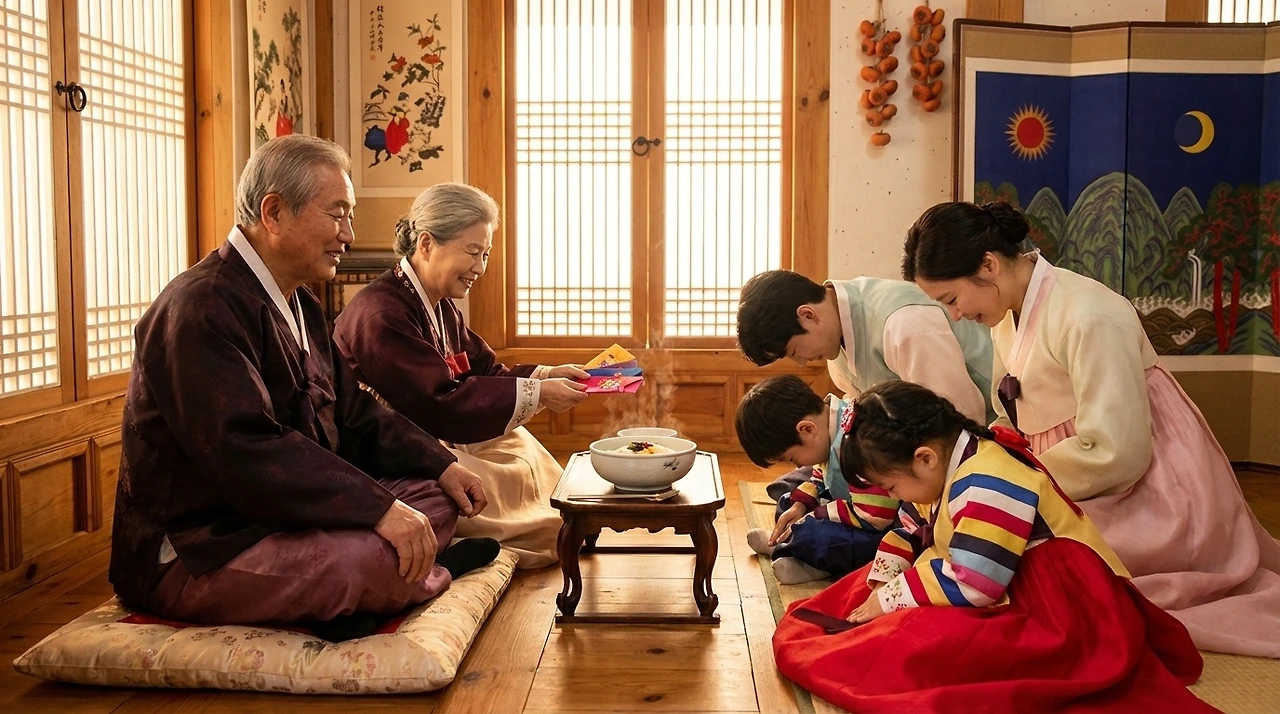 새 옷을 입은 아이들이 어른들 앞에 꿇어앉아 세배를 올린다. "새해 복 많이 받으세요." 단순해 보이는 이 인사에는 한 해 동안의 평안과 번영을 비는 깊은 마음이 실려 있다. 마당에서는 윷놀이 소리가 울리고, 하늘에는 연이 오른다. 놀이조차 그냥 놀이가 아니라, 한 해의 길운을 기원하는 의식이었다.