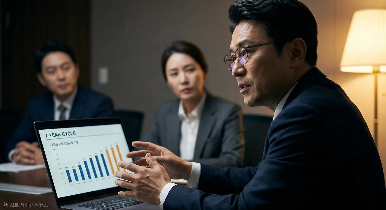 "대호황의 7년입니다. 2125년부터 2132년까지, AI 산업에 엄청난 성장이 올 것입니다."