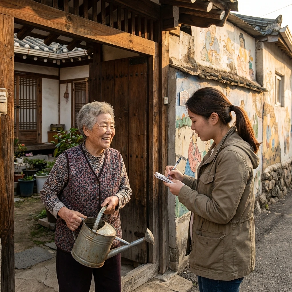 "사람 이야기. 벽화랑 건물만 봤지, 정작 여기 사는 사람들 이야기는 못 들었어."