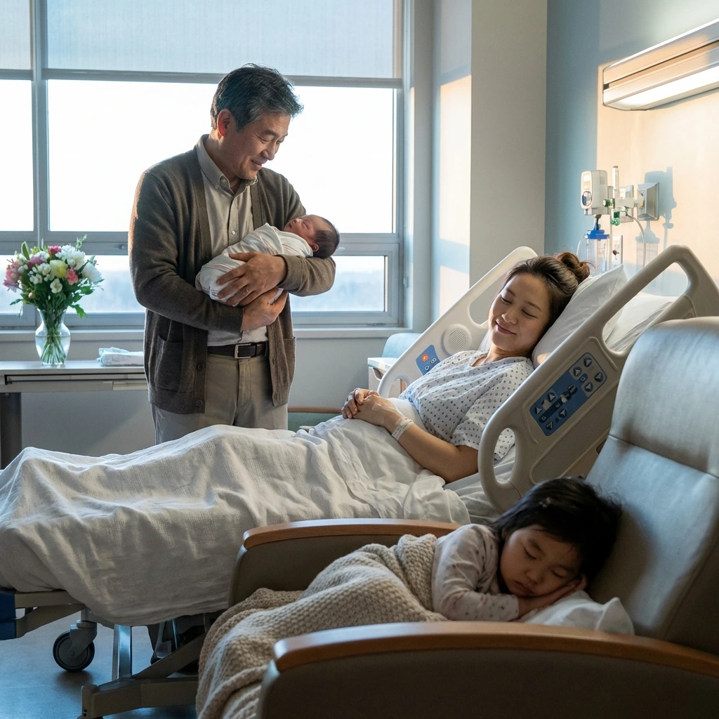병원에서 아기를 안았다.