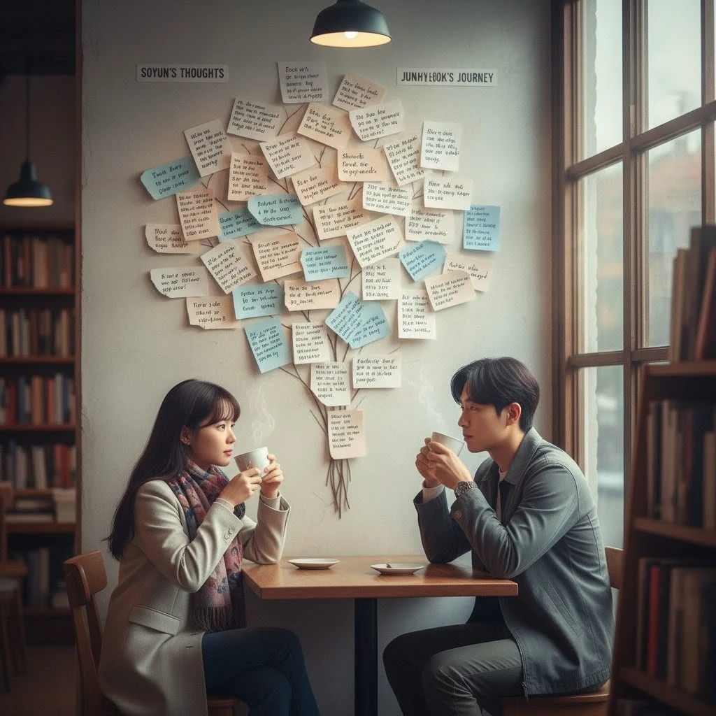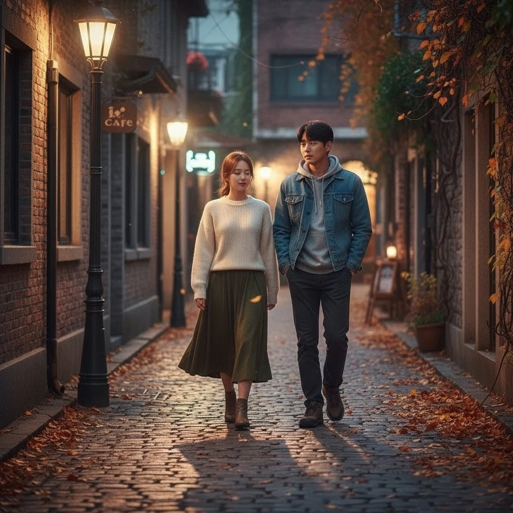 가로등 아래 두 사람의 그림자가 나란히 늘어났다.