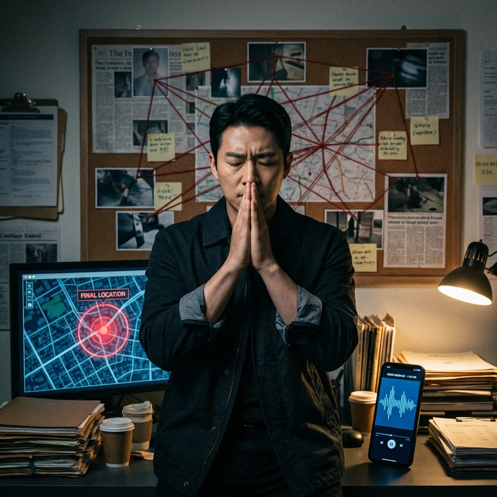 취재 일지를 업데이트했다. 한재원의 육성 메시지 내용, 한무경의 역할, 차량 추적 현황, 편의점 CCTV 접근 계획. 그리고 한상민과의 거래 방향.