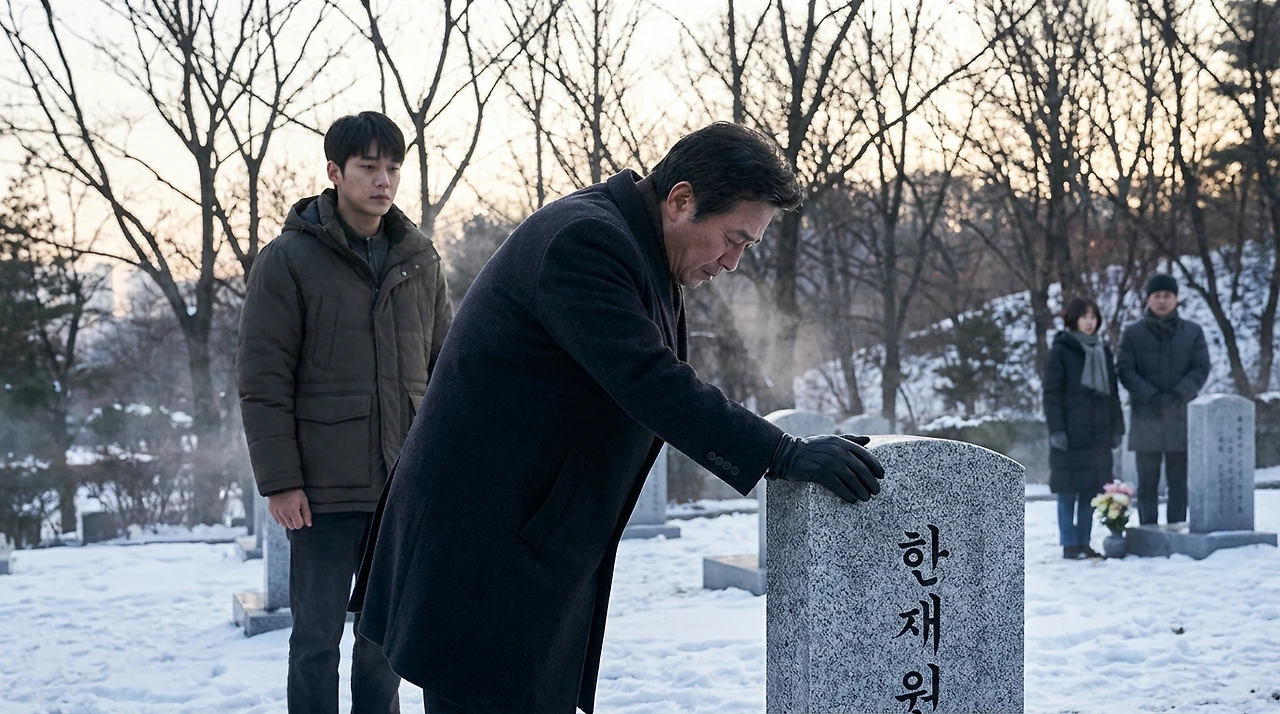 함재식이 남기는 것. 3년의 시간. 그 시간이 이제 법정에서 처리되고 있었다. 하지만 그 시간이 이 비석 앞에서 완성됐다.
