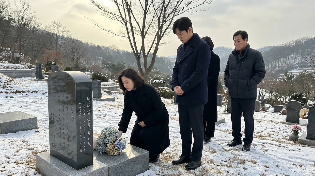 한재원의 묘 앞에서