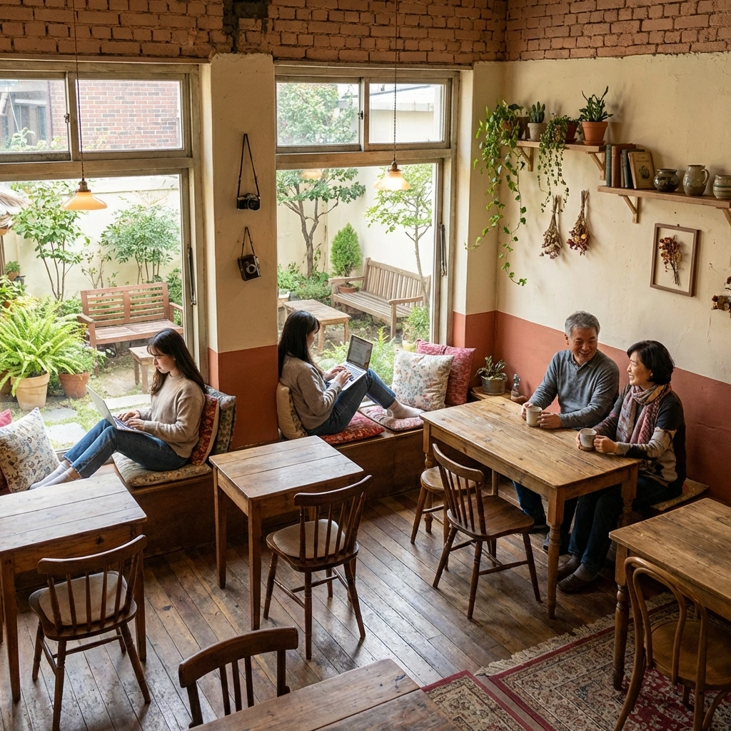 "카페 손님은 대부분 20대지만, 카페 주인은 다양해. 20대도 있고, 30대도 있고, 50대도 있어."