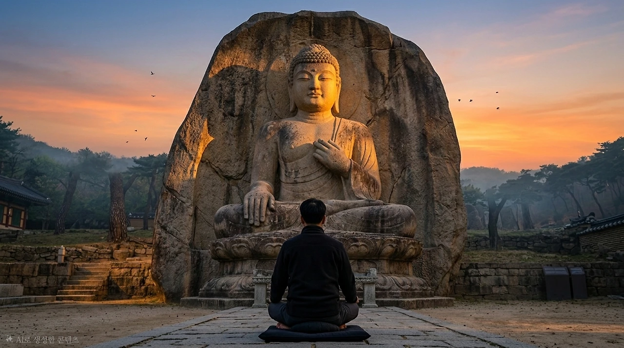 "무상하다. 모든 것은 변한다. 하지만 그 변화 속에 평화가 있다. 석불의 표정처럼."