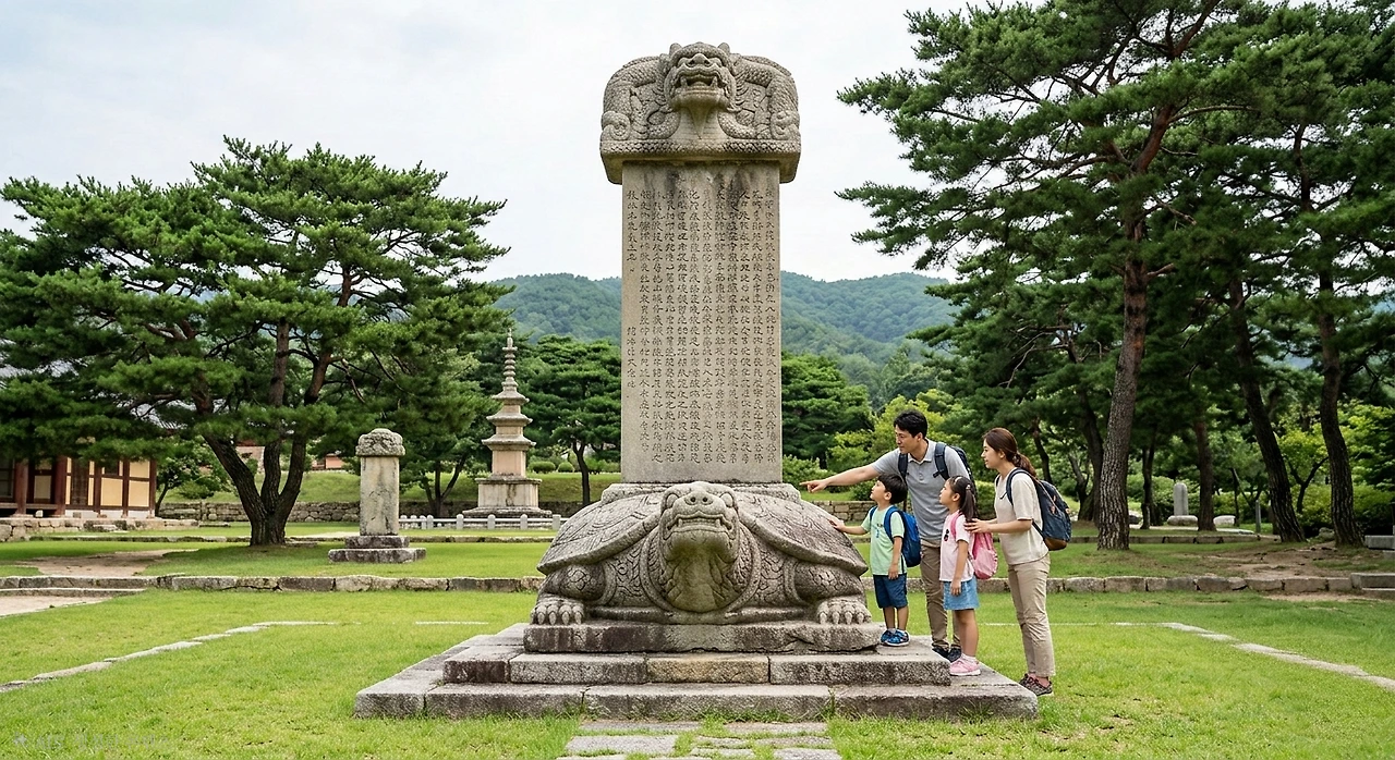 "보물 제47호 성주사지 낭혜화상탑비. 통일신라 시대 승려 낭혜화상을 기리기 위해 세운 탑비입니다."