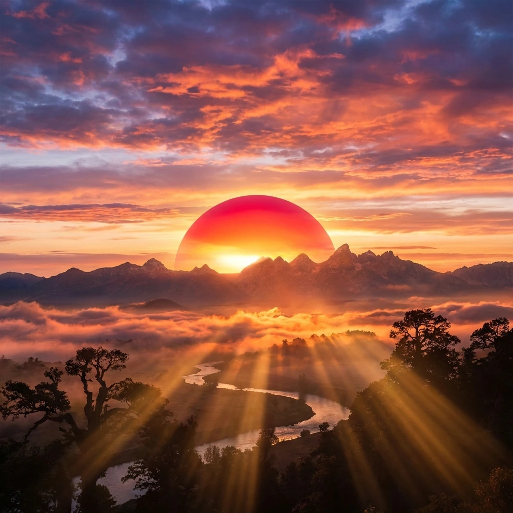 새벽이 다가왔다. 붉은 태양이 언덕 너머로 떠오르며, 새로운 하루가 시작되었다.
