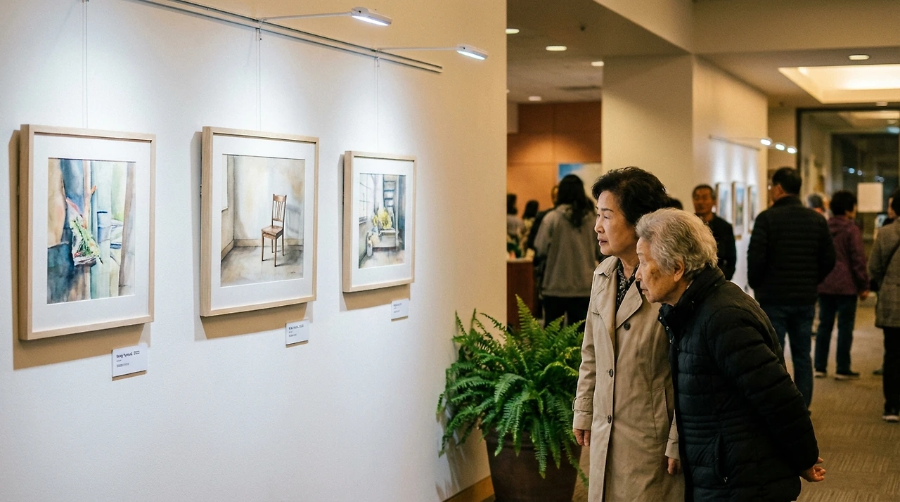 겨울 어귀, 예상치 못한 일이 생겼다. 도서관 로비에 '지역 주민 예술 전시'가 열렸는데, 사서가 혜숙의 그림 세 점을 전시하고 싶다고 했다. 혜숙은 처음에 거절하려 했다.