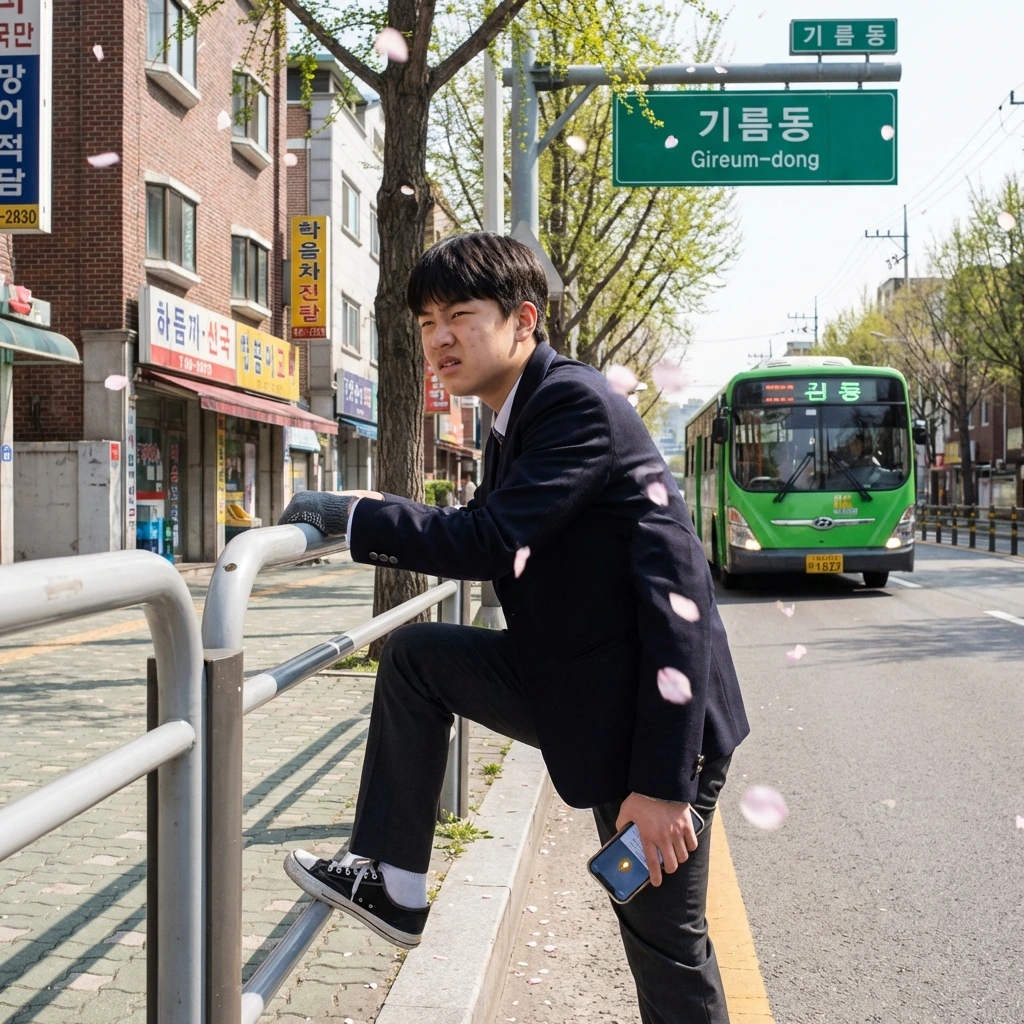 다음 날 아침, 도현은 학교에 가다가 버스 정류장 앞에서 멈췄다. 발이 떨어지지 않았다. 오늘 예행연습이 있는 날이었다. 교실 앞에 서서 반 친구들 앞에서 혼자 말을 해야 했다.