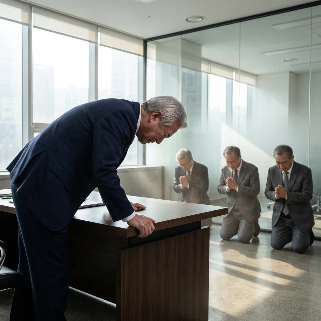 박민준은 책상을 붙잡고 고개를 숙였다.