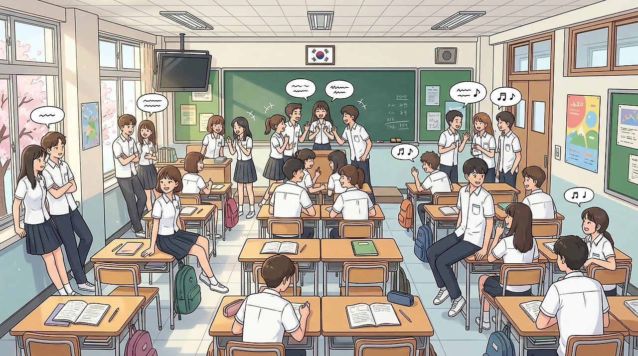 활기찬 교실, 떠드는 학생들