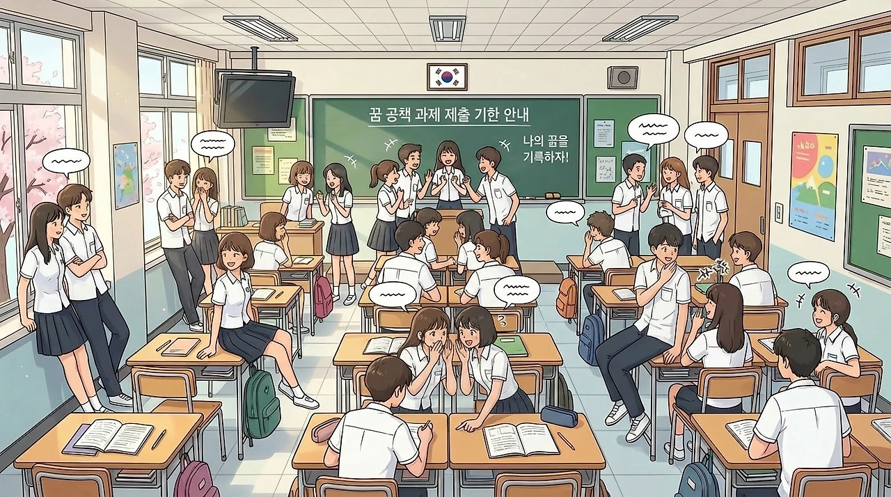 칠판에 쓰여진 "나의 꿈 노트"