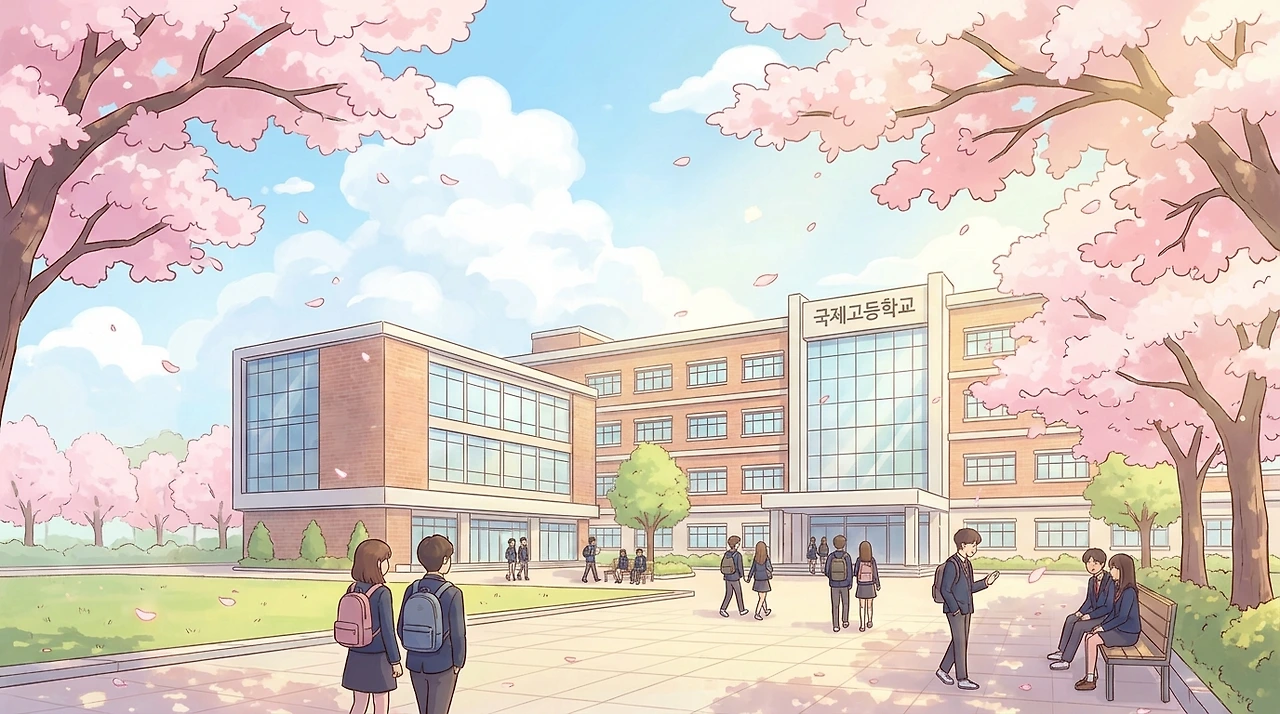 벚꽃 흩날리는 봄날의 학교