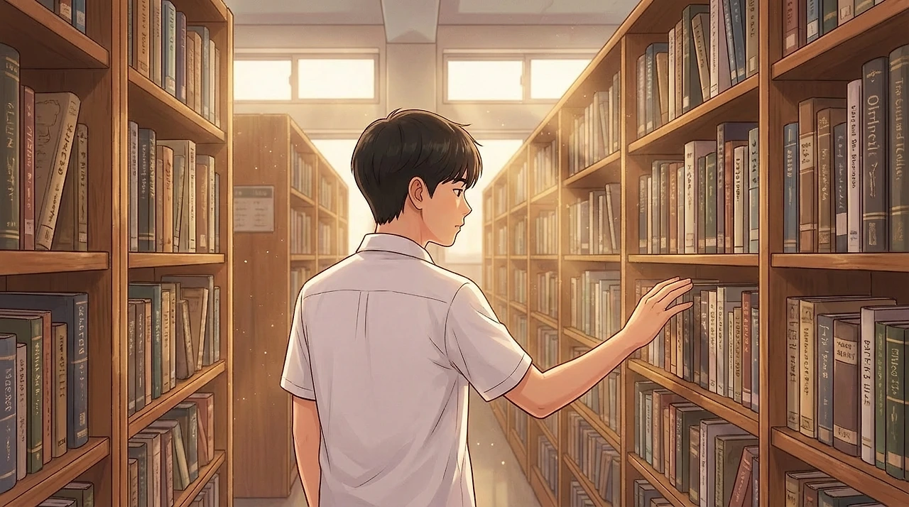 책장 사이를 걷는 지훈