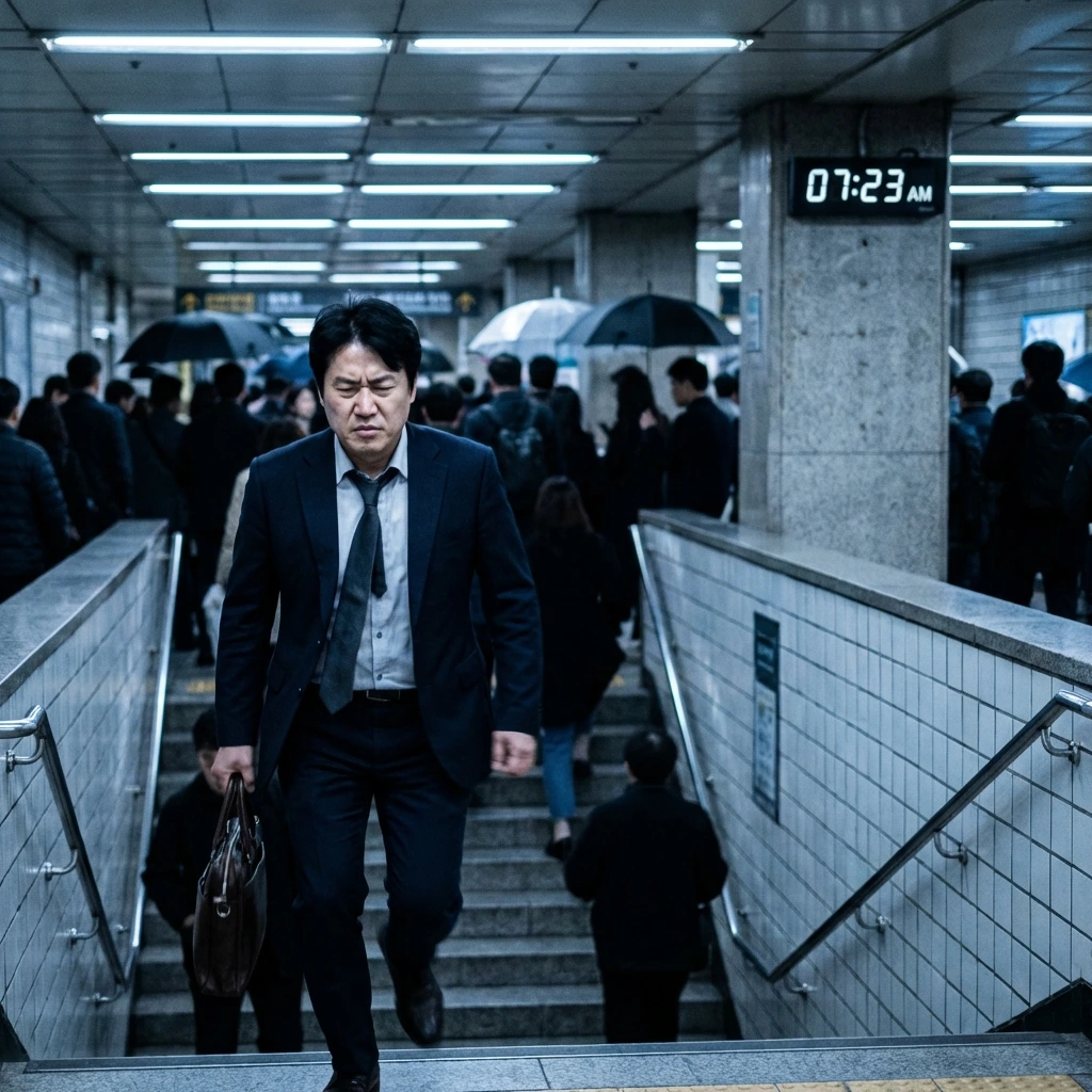 지하철 2호선이 시청역에서 출발한다는 문자 알림을 받은 지 47초가 지났다. 그는 계단 세 칸을 한 번에 뛰어오르고, 자동개찰구를 통과하며, 닫히려는 문 사이로 몸을 밀어 넣었다. 성공이었다. 차가운 에어컨 바람이 땀에 젖은 이마를 식혀주었다.
