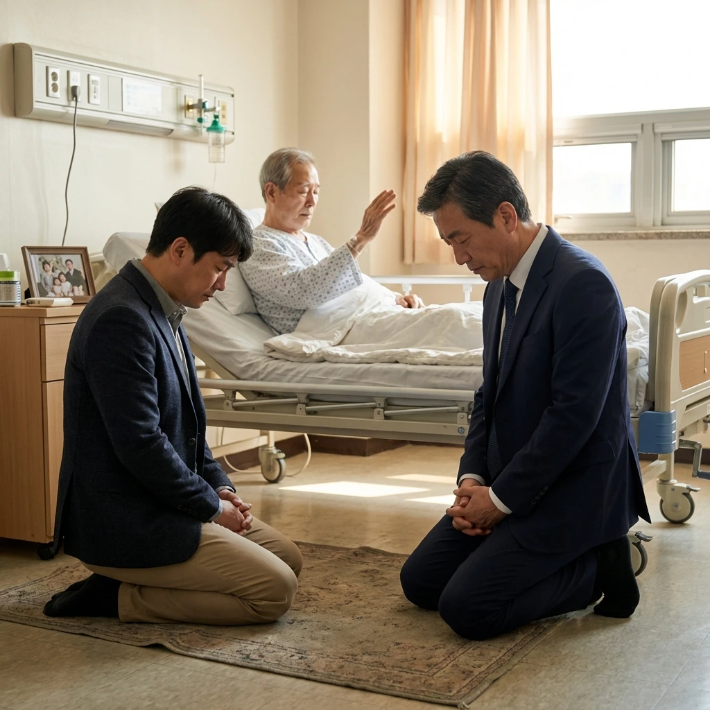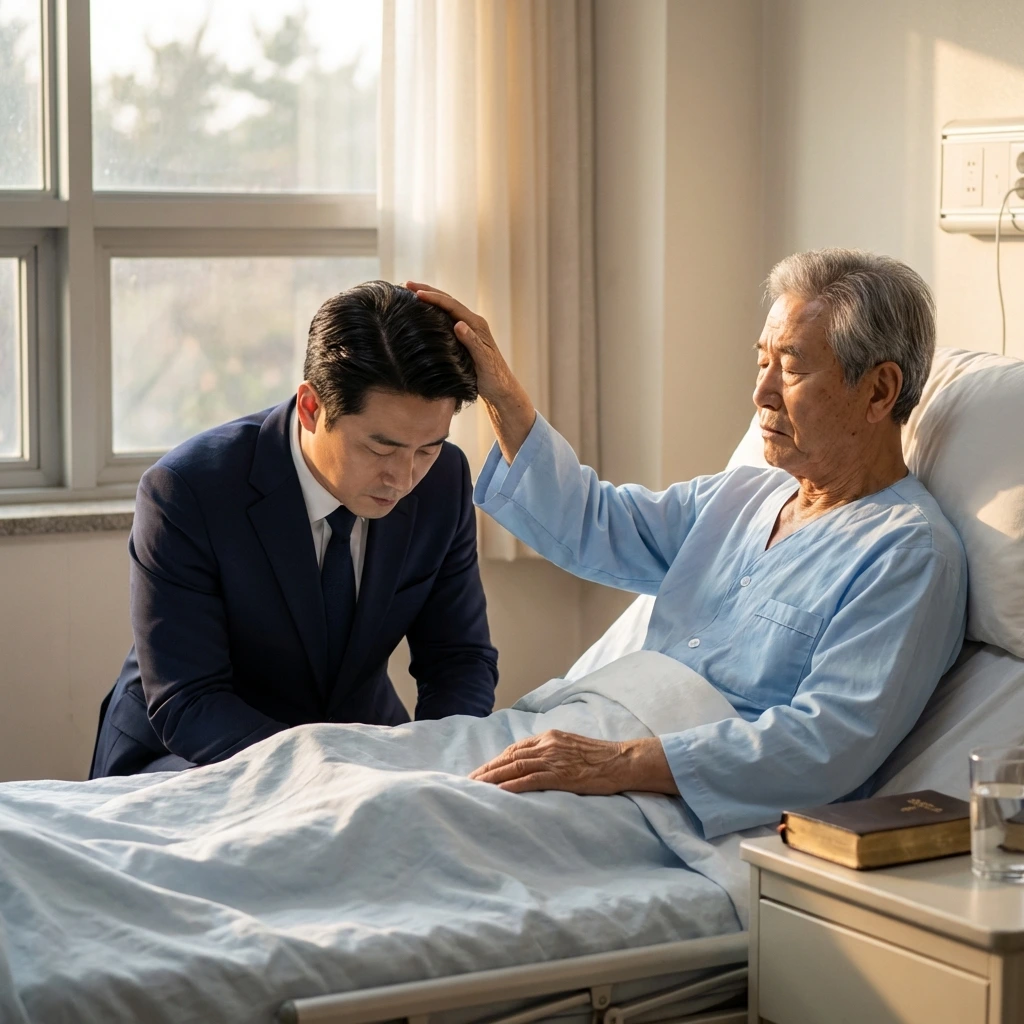 "아버지 오른손은 제 머리에 얹으셔야 합니다."