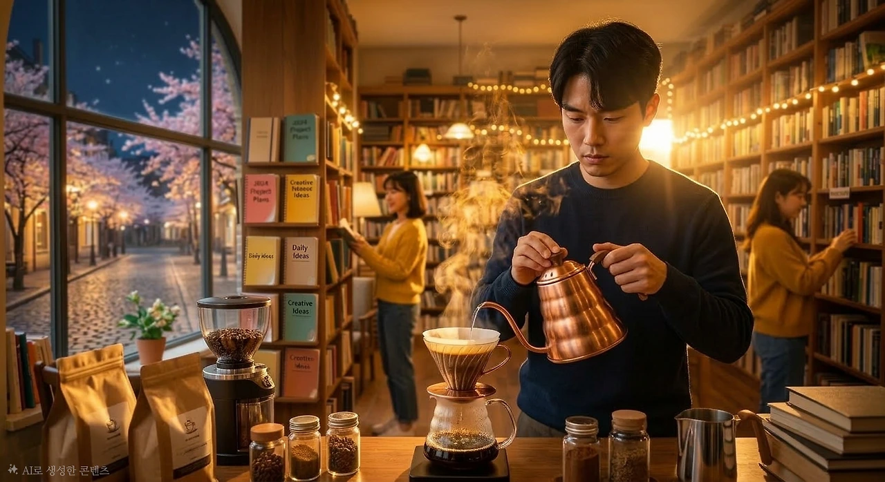 책방 안엔 잔잔한 플루트와 피아노의 선율이 흐르고 있었다.
