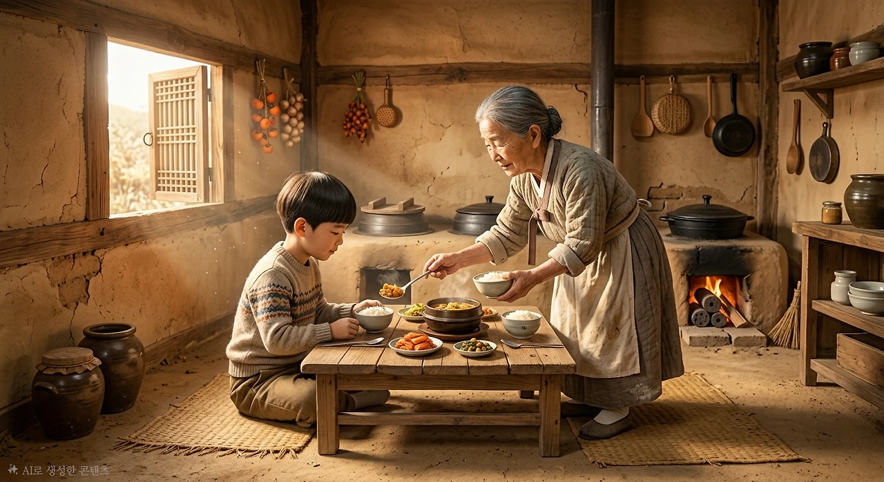 아궁이 앞의 어머니, 보리밥 위에 살짝 얹힌 쌀, 된장찌개 냄새, 아침 햇살 속의 하얀 밥김. 그 기억은 아프도록 선명했다. 반면 어제 먹은 것이 무엇인지는 기억나지 않았다. 삼겹살이었나, 갈비탕이었나.