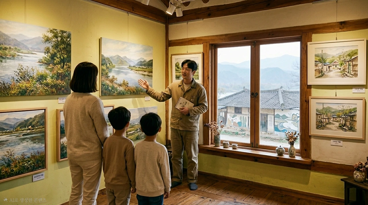 "응. DMZ 가까운 곳. 원래는 민통선 안쪽 마을이었는데, 지금은 예술가들이 모여 사는 문화마을이 됐대."