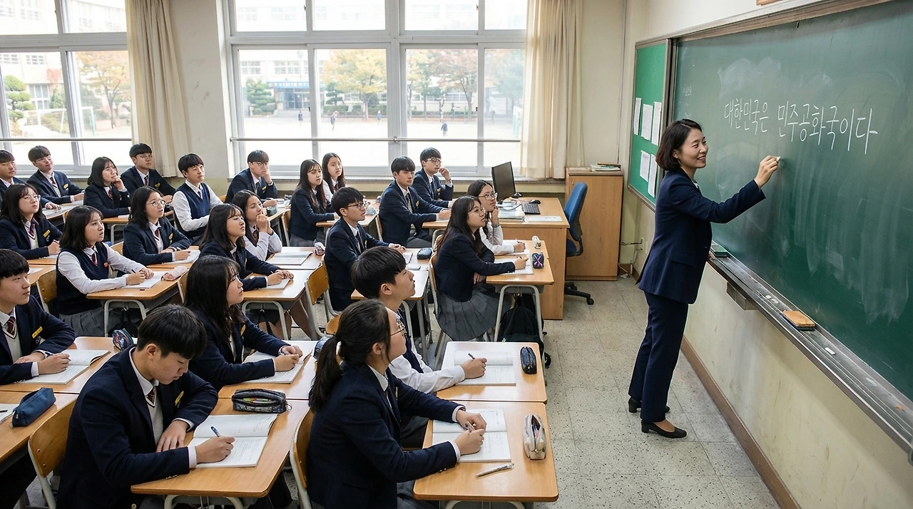 서진은 오래 울었다. 그리고 다음 날 아침, 다시 교실로 갔다. 칠판에 다시 썼다. 대한민국은 민주공화국이다. 손이 떨렸다. 그러나 지우지 않았다.