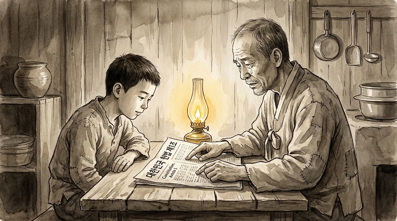그 날 저녁, 병호는 집에 돌아와 식탁 위에 신문지 한 장을 펼쳤다. 국한문 혼용체로 인쇄된 헌법 제1조였다.