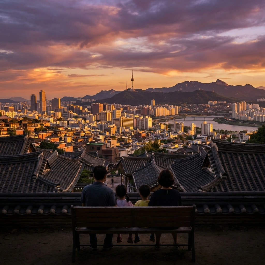 해질녘 성북동은 더 아름다웠다. 석양에 물든 한옥들, 나무 사이로 반짝이는 불빛들.