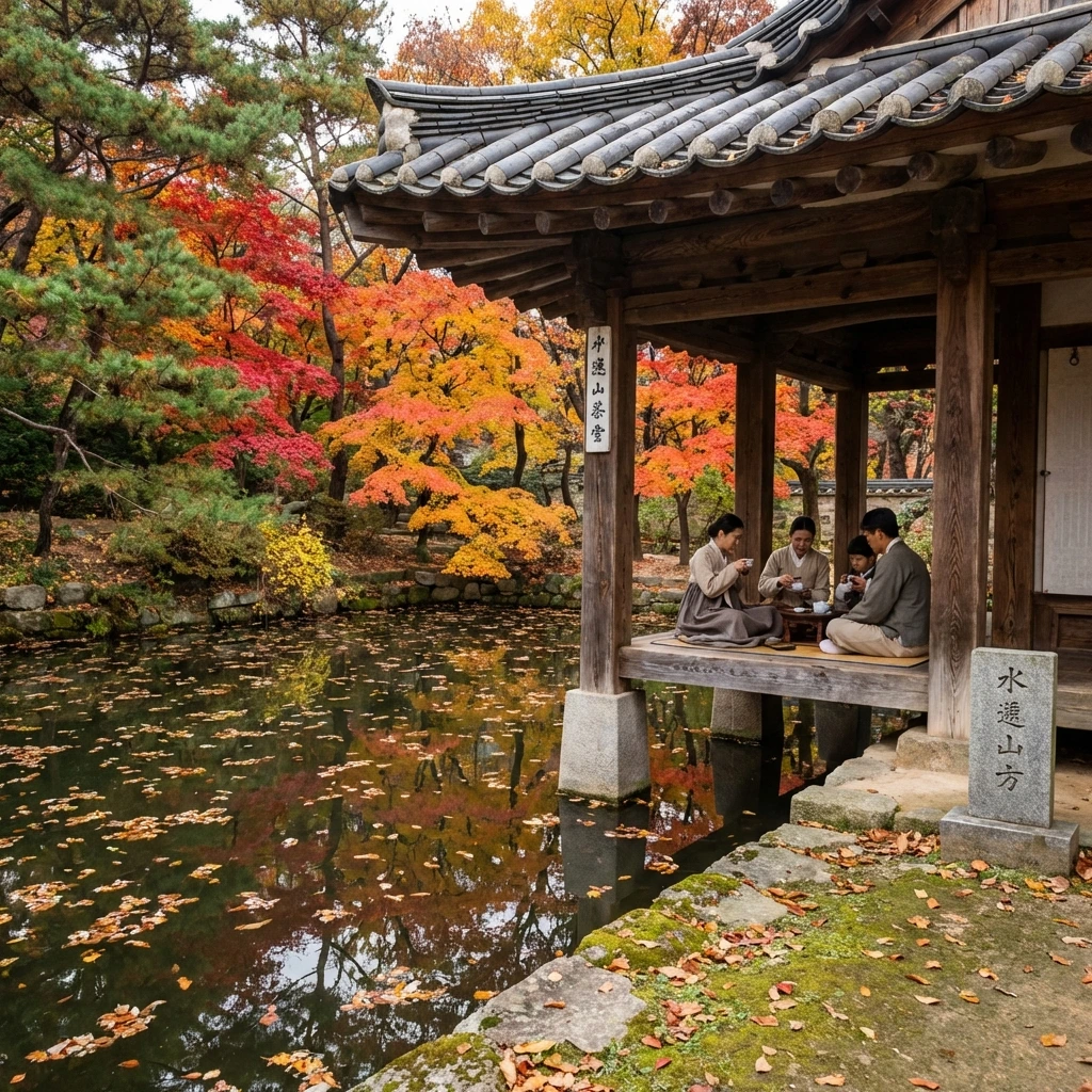연못, 정자, 나무들. 완벽하게 조화를 이룬 한국식 정원이었다.