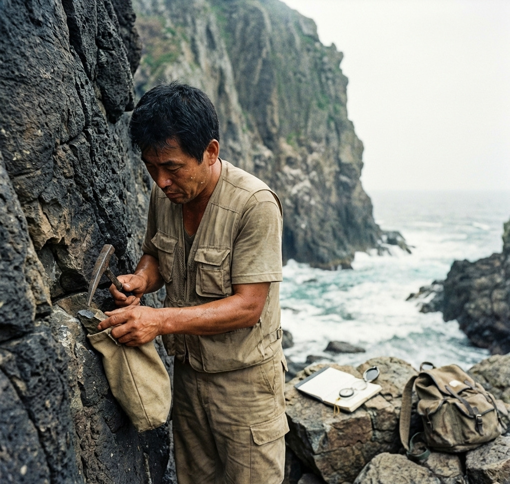 책상을 치고 싶었다. 그러나 치지 않았다. 대신 서랍에서 독도 암석 샘플 하나를 꺼냈다. 1987년 첫 조사 때 채취한 현무암 조각. 손바닥 안에 쥐었다. 차갑고 단단했다. 460만 년의 무게가 손 안에 있었다.