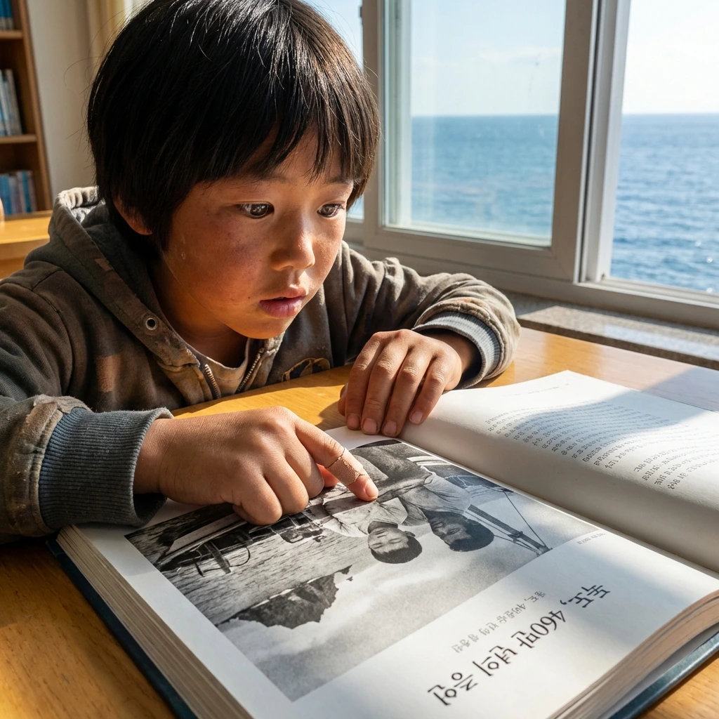 책은 국회도서관에 비치되었다. 독도 연구소에 비치되었다. 그리고 울릉도 도동 초등학교 도서관에도 비치되었다. 어느 날 오후, 열 살짜리 아이가 그 책을 꺼내 첫 장을 펼쳤다. 사진이 있었다. 흑백 사진. 어린 남자아이가 아버지 등에 기대어 잠들어 있고, 배경에 검은 절벽이 있었다.