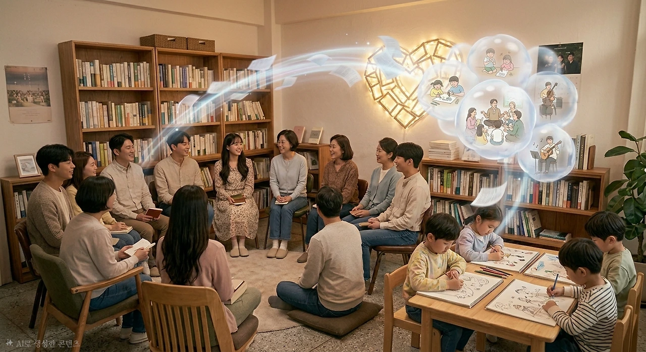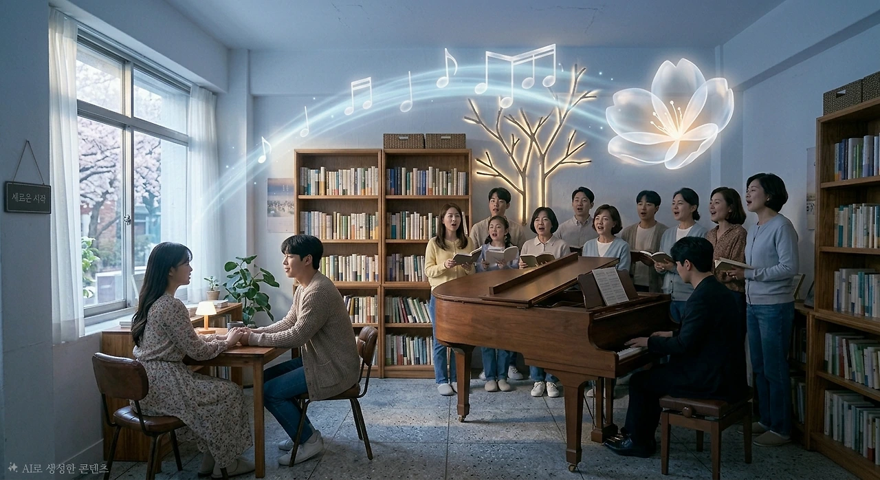책방 안엔 잔잔한 피아노와 합창의 선율이 흐르고 있었다.