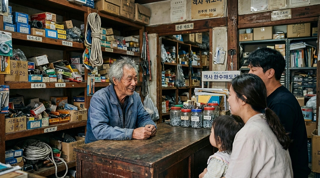 하지만 그 옆에는 조용한 철물점도 있고, 할머니 국밥집도 있다.