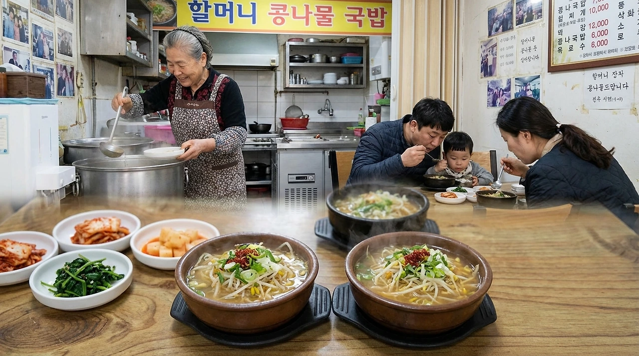 골목 끝에 오래된 식당을 찾았다. '할머니 콩나물국밥'.