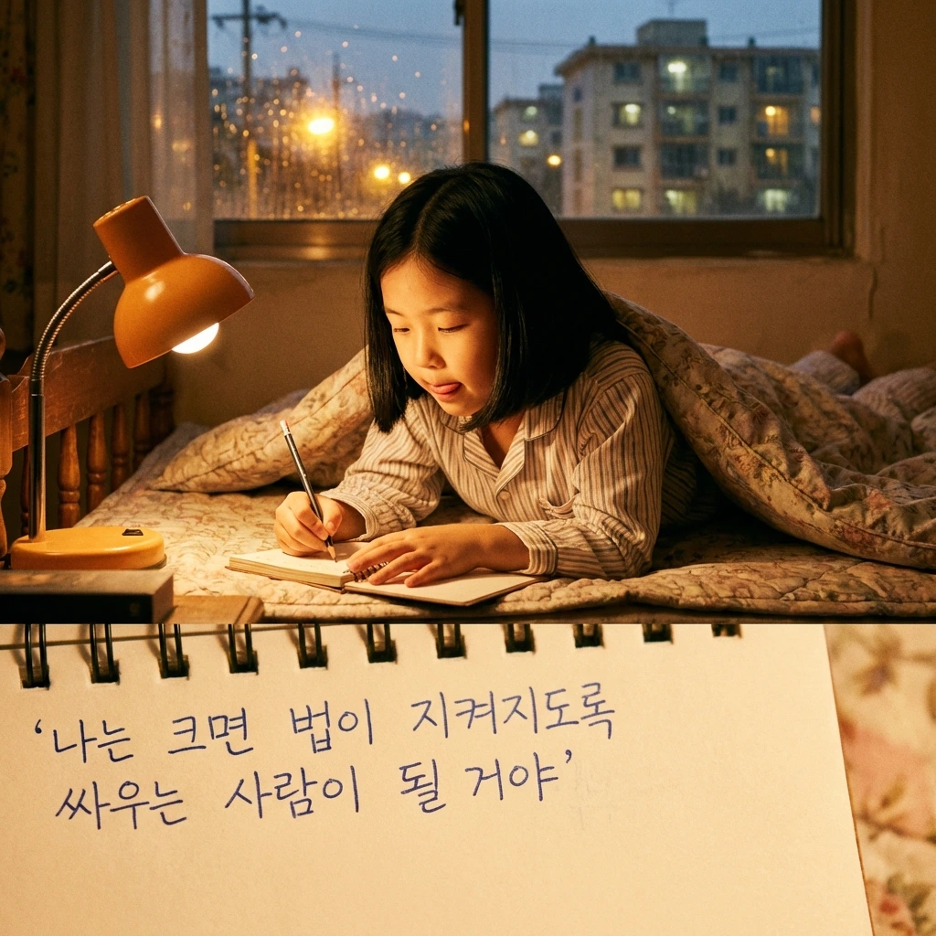 나는 크면 법이 지켜지도록 싸우는 사람이 될 거야.