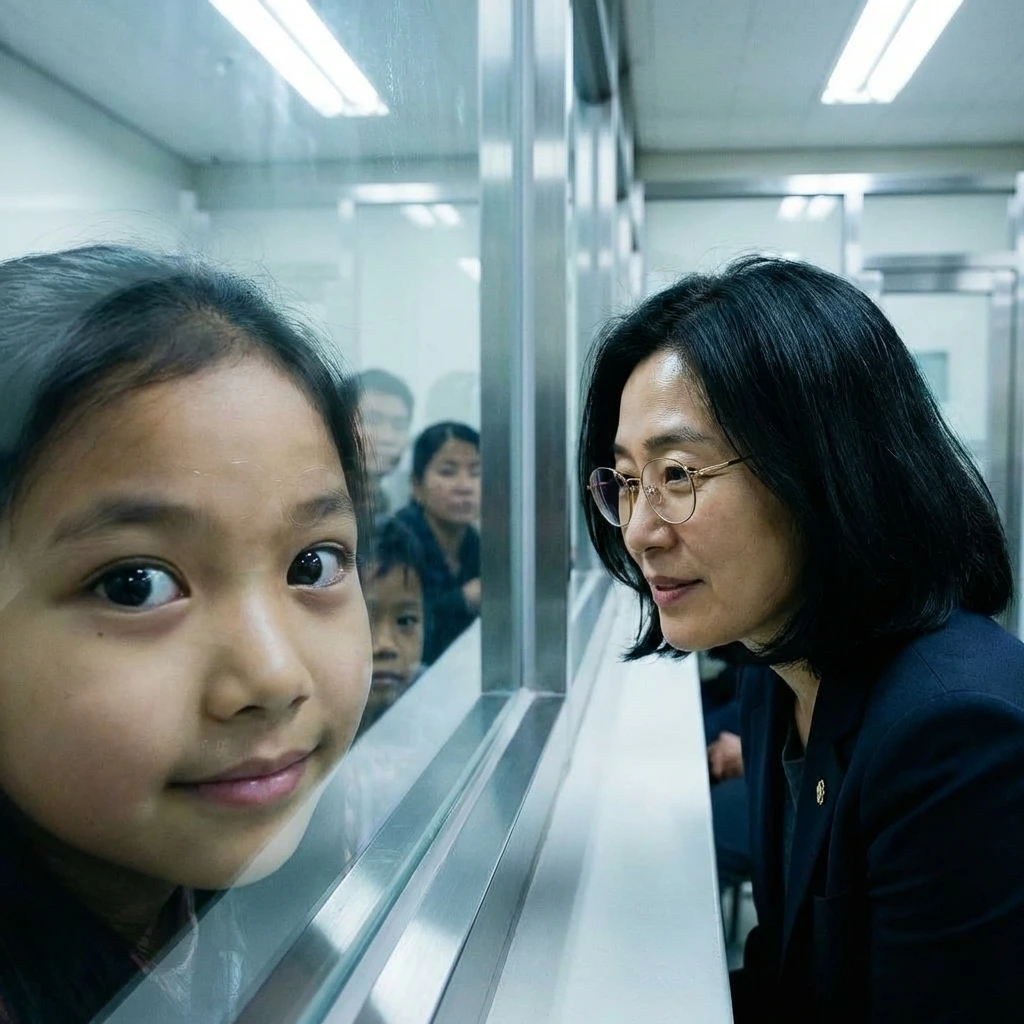 지수가 보호소에 들어섰다. 면회실. 유리 너머에 마웅 테 가족이 앉아 있었다. 아버지의 얼굴에 공포가 새겨져 있었다. 어머니는 딸의 손을 꽉 쥐고 있었다. 딸 뉴에 뉴에는 눈이 크고 맑았다. 두려움보다 호기심이 더 많은 눈이었다. 지수를 보더니 작게 웃었다.