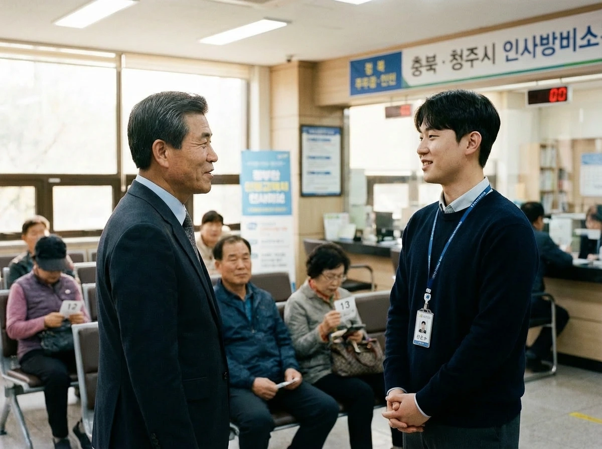 청사로 돌아오는 길에 민원실 앞을 지났다. 잠시 멈추어 안을 들여다보았다. 번호표를 들고 앉아 있는 사람들. 형광등은 더 이상 깜박거리지 않았다. 의자도 나무가 아니라 쿠션이 있었다.