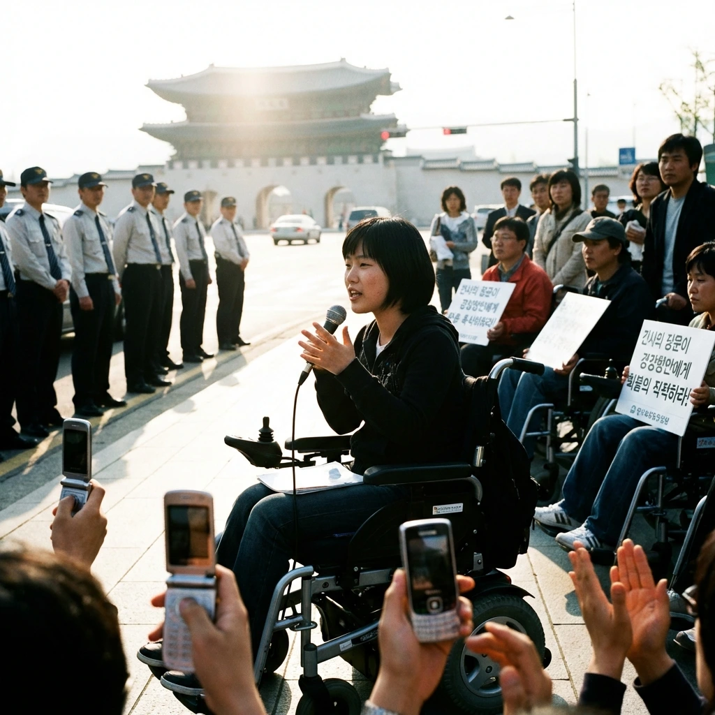 "저는 한국에서 왔습니다. 뇌성마비 장애인입니다. 대한민국 헌법 제10조는 모든 국민이 인간으로서의 존엄과 가치를 가지며, 국가는 불가침의 기본적 인권을 확인하고 보장할 의무를 진다고 말합니다. 아름다운 문장입니다. 그러나 문장과 현실 사이에는 여전히 거리가 있습니다."