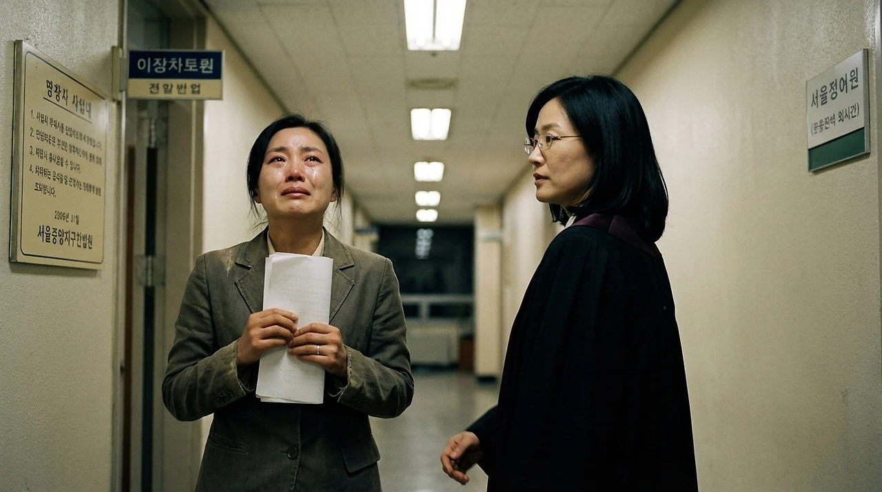 그 날 법정에서 박혜진이 판결문을 들고 나오며 법원 복도에서 울었다. 소리 없이. 수현은 법복을 입고 판사실로 돌아가다 그 모습을 보았다. 멈추지 않았다. 멈추면 안 되는 자리였다.
