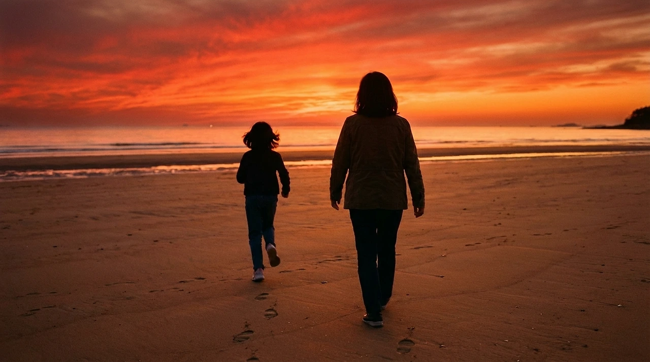 은서가 다시 모래사장으로 뛰어갔다. 소진은 그 뒷모습을 바라보았다. 서해 바다가 붉게 물들었다. 노을이 넓게 펼쳐졌다.