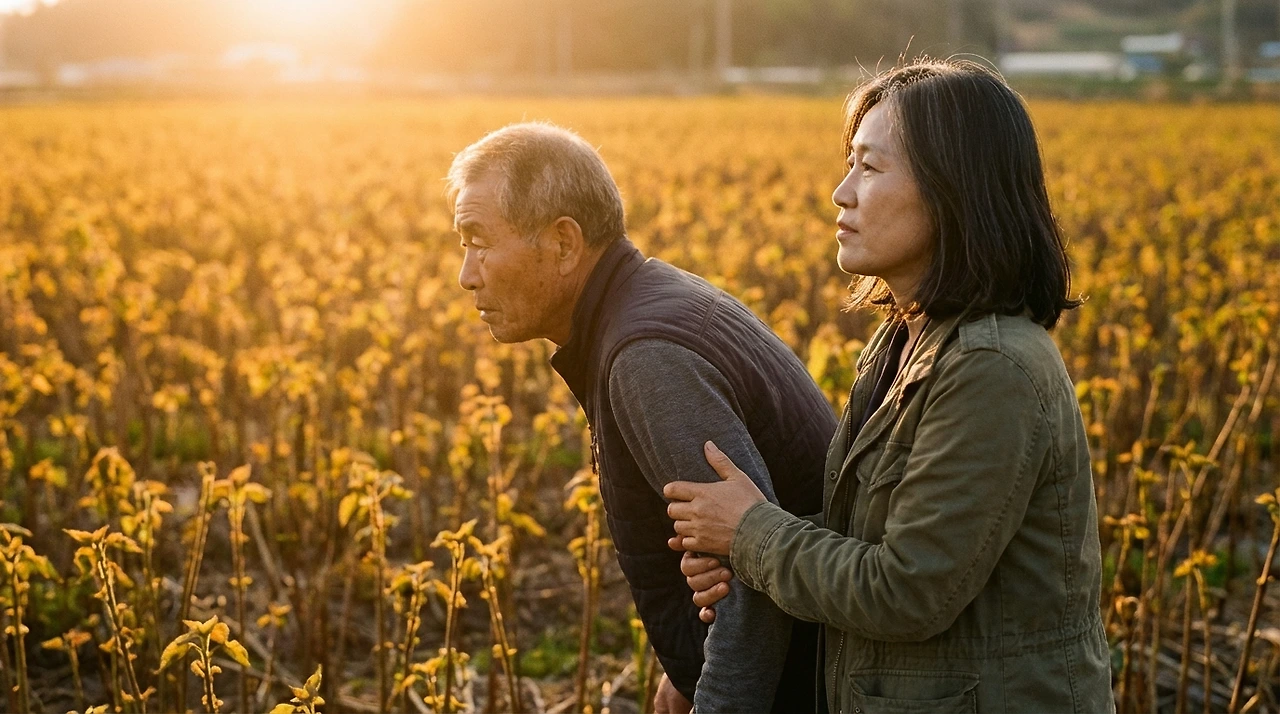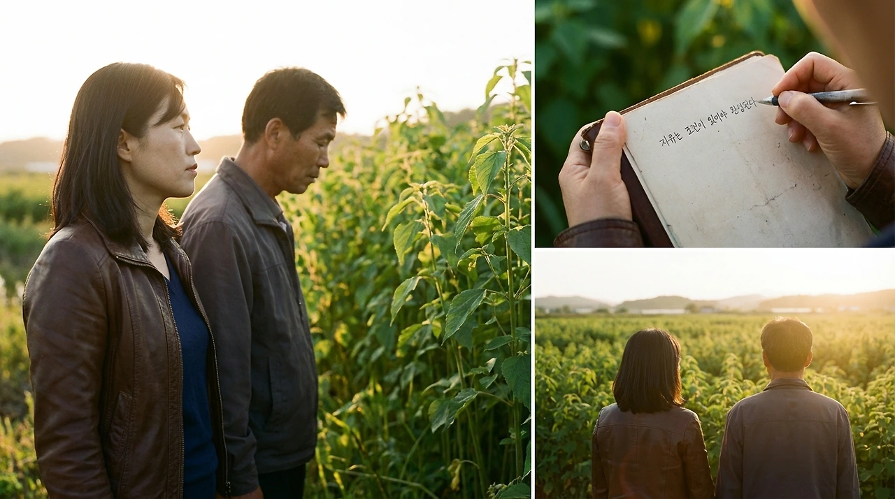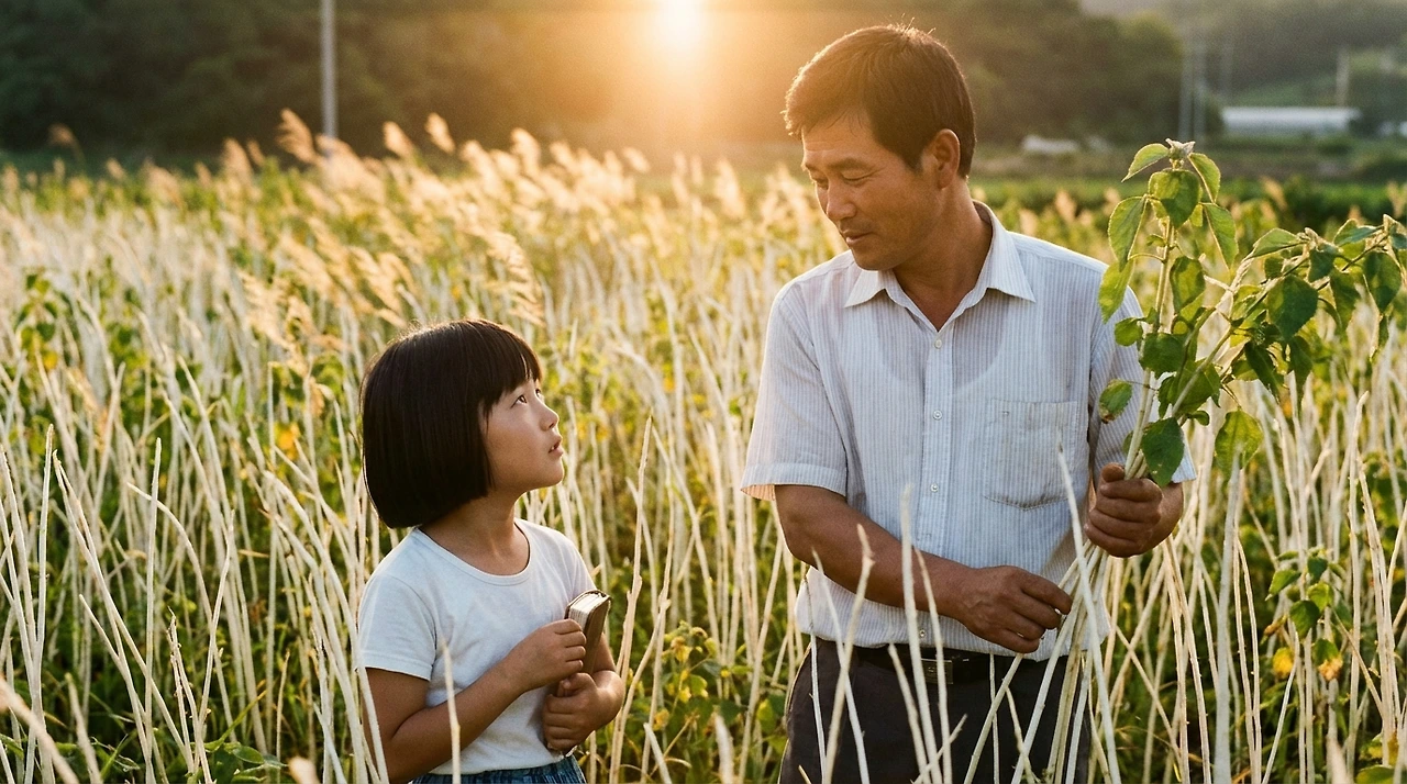 어느 날 오후, 소진은 아버지의 모시밭 앞에 서 있었다. 아버지는 허리가 더 굽었지만 여전히 모시밭을 돌보고 있었다.