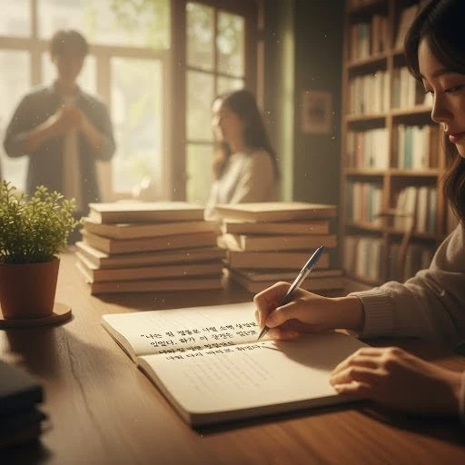 창가엔 청년의 글이 조심스럽게 놓였고,