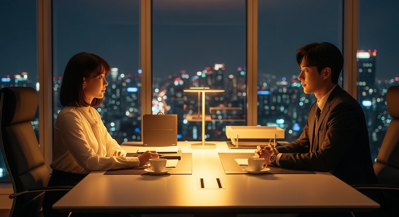 오늘도 어김없이 울리는 알람 소리에 강민서는 눈을 떴다. 7시 정각. 그녀의 하루는 언제나 정확했다. 샤워, 아침식사, 출근 준비까지 모든 것이 계획된 대로 흘러갔다."오늘도 화이팅!"거울 속 자신에게 작은 미소를 보내며, 민서는 집을 나섰다.스카이라인 마케팅 32층. 엘리베이터 문이 열리자 익숙한 사무실 풍경이 펼쳐졌다. 탁 트인 창밖으로 보이는 도시 전망은 여전히 그녀의 마음을 설레게 했다."민서 씨, 아침부터 에너지 넘치네요."동료 수진이 환하게 웃으며 다가왔다."당연하지. 오늘 중요한 프로젝트 공지가 있다던데?""맞아요. 뉴라이프 화장품 런칭 캠페인이래요. 엄청 큰 건데..."두 사람의 대화는 회의실로 향하는 발걸음과 함께 끊어졌다."여러분, 이번 프로젝트는 우리 회사에게 매우 중요한 기회입니다."박재혁 팀장의 목소리가 회의실에 울려 퍼졌다. 민서는 무의식중에 그의 날카로운 눈매에 시선이 머물렀다가 황급히 시선을 돌렸다."새로운 세대를 겨냥한 참신한 아이디어가 필요합니다. 각자 기획안을 준비해 주세요."회의가 끝나고, 민서는 자리로 돌아와 노트북을 열었다. 머릿속에서 아이디어들이 빠르게 정리되기 시작했다.'진정성 있는 뷰티 스토리... 그래, 이거야!'다음 날 오후, 재발표 시간."강민서 대리의 '나다운 아름다움' 캠페인 컨셉을 채택하겠습니다."재혁의 말에 민서의 심장이 빠르게 뛰었다. 하지만 곧 그의 차가운 목소리가 이어졌다."마감이 급합니다. 오늘 밤까지 세부 기획서를 완성해야 합니다. 야근 각오하세요."다른 팀원들이 하나둘 퇴근하는 가운데, 사무실엔 민서와 재혁만 남았다.밤 9시. 사무실은 고요했다."커피 한 잔 어때요?"재혁이 예상치 못하게 말을 걸어왔다. 평소와 다른, 부드러운 목소리였다."아... 네, 감사합니다."그가 건넨 따뜻한 커피 컵을 받으며, 민서는 그의 손이 자신의 손에 스치는 순간을 느꼈다. 작은 전기가 흘렀다."힘들지 않나요? 이렇게 늦게까지...""괜찮습니다. 일이 재미있어요.""그래도 몸은 돌봐야죠."창밖으로 반짝이는 도시의 야경이 보였다. 두 사람은 잠시 아무 말 없이 그 풍경을 바라봤다."팀장님도 이렇게 늦게까지 일하시는 거 힘드시죠?""...습관이 된 것 같아요. 집에 가도 할 일이 별로 없거든요."그의 목소리에 묻어난 외로움을 민서는 놓치지 않았다.밤 11시. 마침내 기획서가 완성됐다."정말 훌륭한 아이디어예요. 고생하셨습니다."재혁의 진심 어린 칭찬에 민서의 볼이 살짝 붉어졌다."그럼... 먼저 가시죠. 택시 잡아드릴게요.""함께 가면 안 될까요? 어차피 같은 방향이고..."택시 안, 조용한 침묵이 흘�렀다. 하지만 어색하지 않았다. 도리어 편안했다."오늘 정말 고생하셨어요. 내일은 일찍 출근하지 마세요.""아니에요. 괜찮습니다."민서의 집 앞에 도착했을 때, 재혁이 말했다."민서 씨.""네?""...좋은 꿈 꾸세요."집에 들어선 민서는 창가에 서서 사라져가는 택시의 뒷모습을 바라봤다.'오늘 밤은... 뭔가 달랐어.'그녀의 마음 한구석에서 작지만 따뜻한 감정이 싹트고 있었다. 하지만 동시에 불안감도 함께 자라고 있었다.'이건 그냥 상사의 배려일 뿐이야. 착각하지 마, 강민서.'하지만 잠들기 전까지, 그녀의 입가엔 작은 미소가 사라지지 않았다.