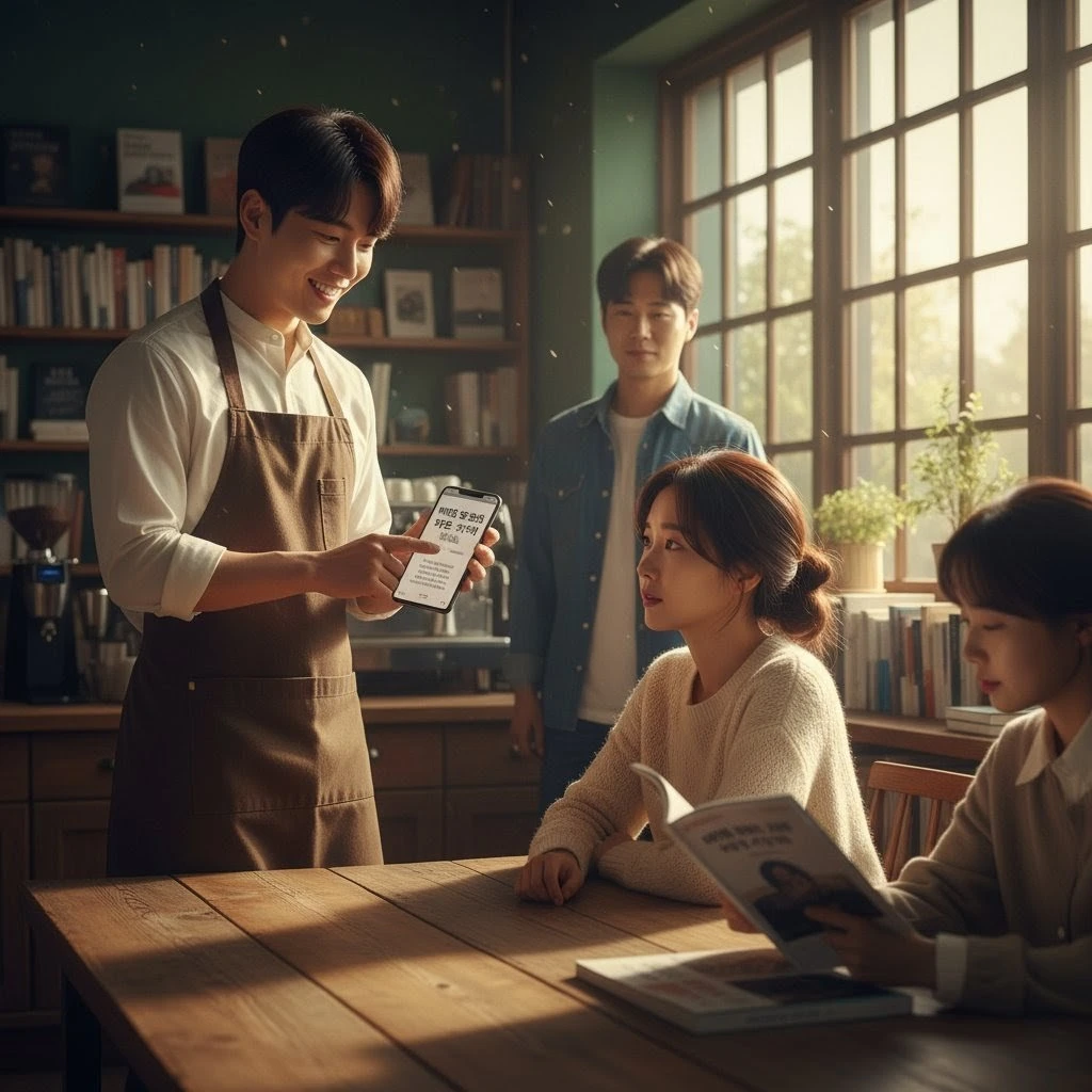책방 안엔 잔잔한 기타 선율이 흐르고 있었다.