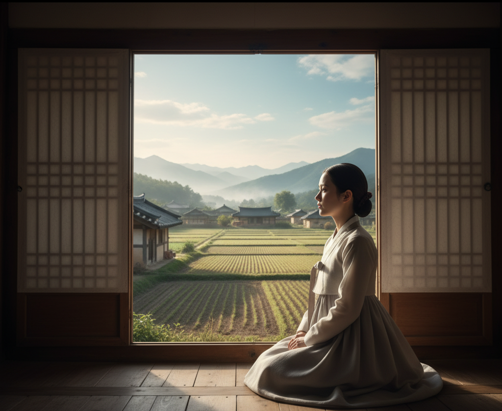 한편 서영은 안채에서 창밖을 바라보며 이곳의 평화로운 풍경을 감상하고 있었다.
