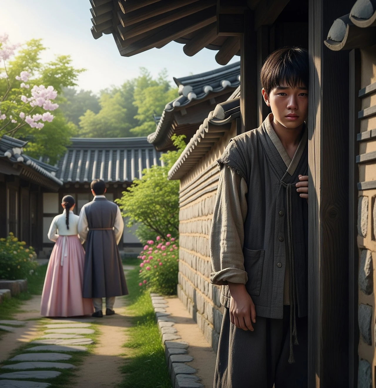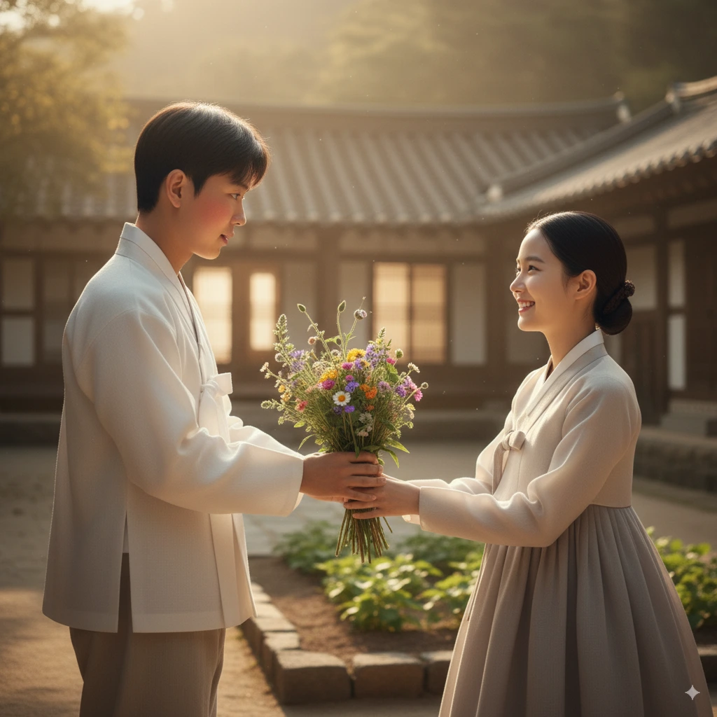 서영은 산갑이의 진실한 마음을 느끼며 마음이 따뜻해졌다. 한양에서 만났던 많은 사람들은 모두 자신의 신분 때문에 접근했는데, 순갑이는 그런 계산 없이 순수한 마음으로 자신을 대해주는 것 같았다."고맙습니다, 산갑 도련님." 서영이 환한 미소를 지으며 말했다.그 미소를 본 순간, 산갑이의 가슴이 크게 뛰었다. 이것이 바로 사랑이라는 감정인 것일까? 그는 자신도 모르게 얼굴이 붉어지는 것을 느꼈다.그 후 며칠이 지나면서 산갑이와 서영 사이에는 묘한 감정이 자라나고 있었다.산갑이는 매일 아침 일찍 일어나 뒷산을 돌며 서영에게 줄 것들을 찾았다.