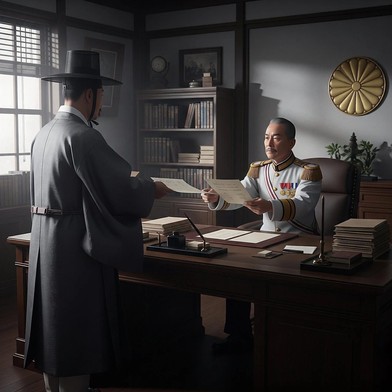 "이산갑 씨, 조선인들의 민심을 잘 파악해서 보고하시오." 일본인 상관이 산갑이에게 말했다.산갑이는 이런 상황에서 자신의 정체성에 대해 깊이 고민하게 되었다. 조선인으로서의 자존심과 현실적 선택 사이에서 갈등했다.정치는 이런 혼란한 시대에 새로운 사상에 눈뜨기 시작했다.