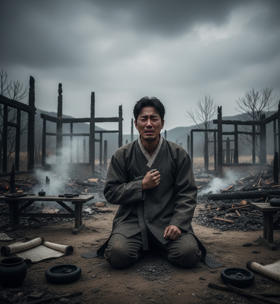 산갑이는 눈을 떴다. 아름다웠던 기억과는 대조적으로, 눈앞에는 처참히 불타버린 학당의 잿더미만 남아 있었다.
