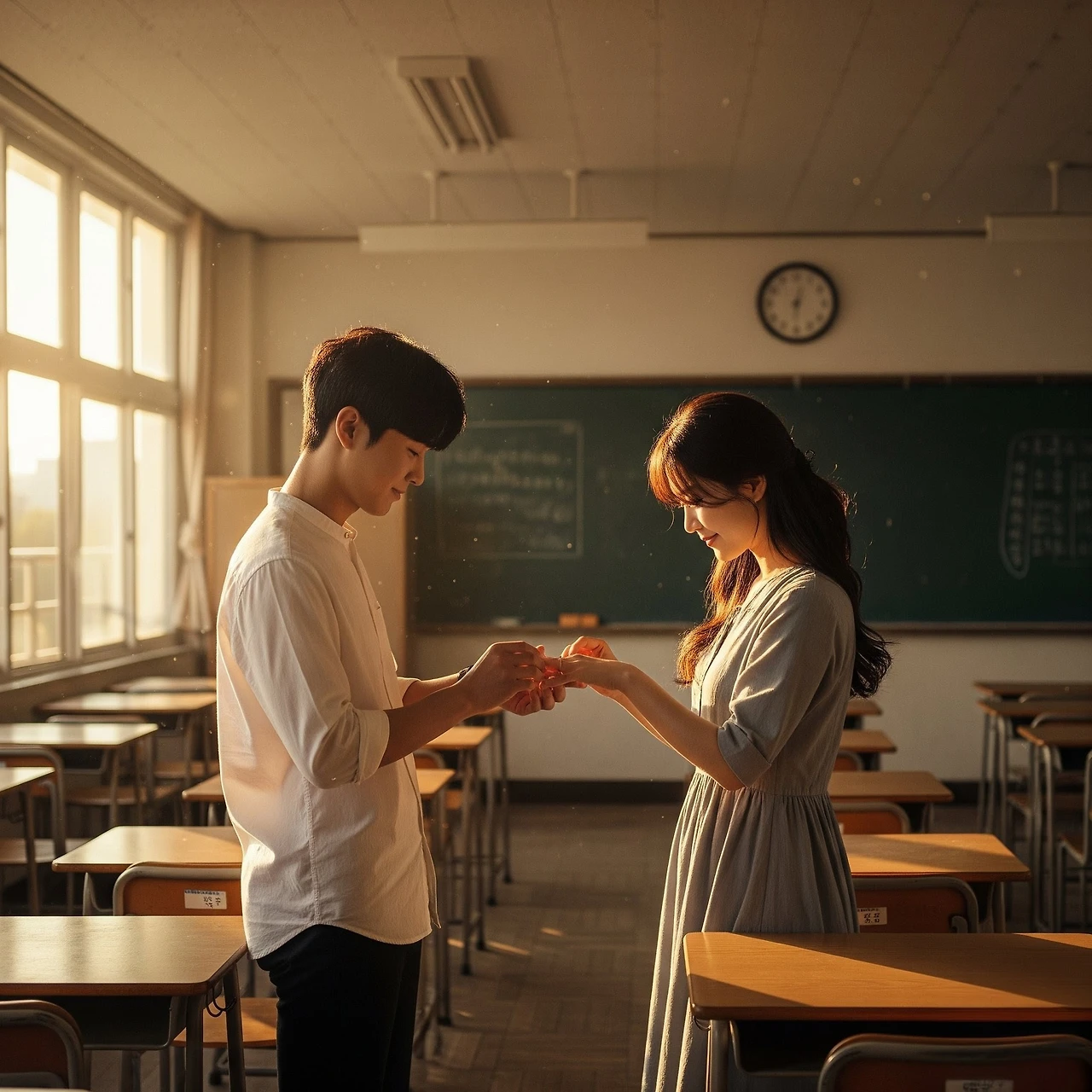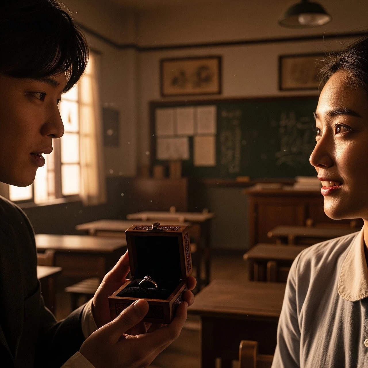 반지를 주고받던 날며칠 후, 학생들이 모두 하교한 조용한 교실에서 두 사람은 다시 만났다.