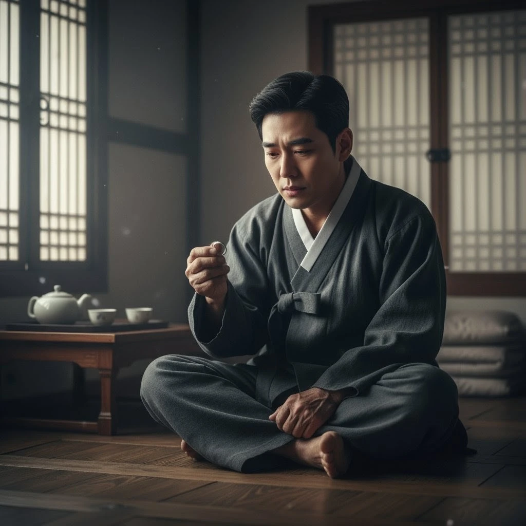 이산갑은 반지를 보며 지난 시간을 회상하며 마음의 쓰라림을 느껴가기 시작했다. 그의 눈가에 짧은 이슬이 맺혀 있었다.