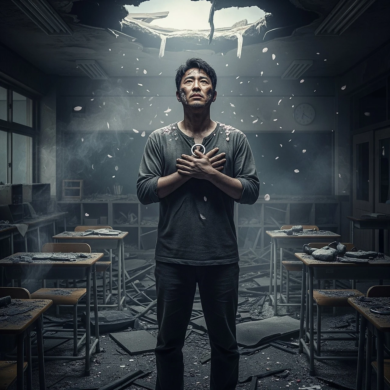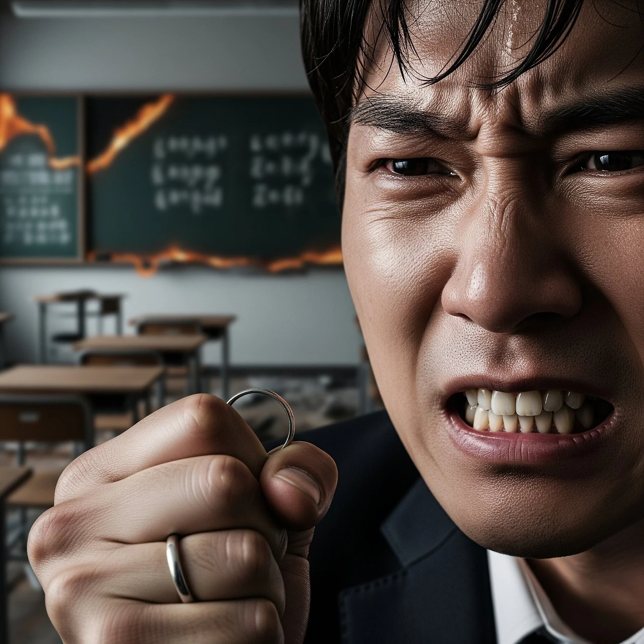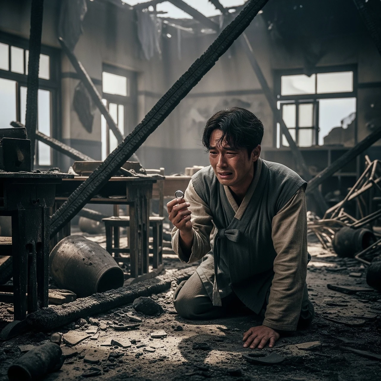 현재로 돌아온 산갑하지만 그 모든 아름다운 기억들이 재가 되어버린 지금, 산갑은 그 은반지를 손에 쥐고 절망에 빠져있었다. 학당은 불타버렸고, 서영은 일본 경찰에 끌려갔다."정치... 네가 그랬구나." 산갑이 이를 악물었다.반지를 꼭 쥔 채, 산갑은 불타버린 교실을 바라보았다. 서영과 함께했던 그 아름던 추억들이 모두 재가 되어버린 것 같았다. 하지만 그는 포기하지 않을 것이었다. 이 반지가 상징하는 사랑만큼은, 그 무엇도 태워버릴 수 없을 것이다.벚꽃잎이 흩날리던 그날의 약속을, 교실에서 나눈 그날의 맹세를, 그는 결코 잊지 않을 것이다.